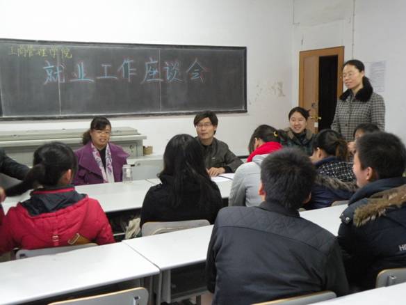 2011年,工商管理公司共有8个专业736名毕业生。截至2010年12月25日,已落实就业单位开始顶岗实习的同学有682人,尚有54名同学在校学习,未办离校手续。为进一步了解未就业同学的动态,加强就业指导工作,12月28日下午,工商管理公司学工办集合未就业同学在笃学楼D多媒体教室9召开就业工作座谈会。参加本次座谈会的人员有学工办主任张联朋、毕业年级辅导员柴继红、毕业班班主任张敏娜、陈晶和王伟以及尚未落实就业单位的毕业生同学。
