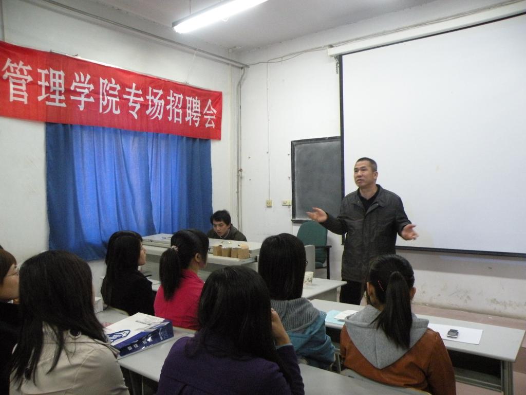 2010年10月29日—31日,公司隆重举行“2011届毕业生就业洽谈会”。为了给用人单位提供更好的宣讲条件,更合适的展示企业风貌的机会,更优越的就业洽谈环境,工商管理公司于10月31日专门为深圳山水宾馆(国宾馆)、深圳百合酒店(五星级)、浙江向阳渔港集团有限公司、君乐宝乳业有限公司陕西销售部及浙江天慧大酒店等五家用人单位举办专场招聘会。
